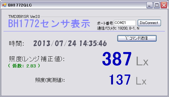パソコンから”L"のコマンドを送信することでセンサーから計測値が取得することができます。