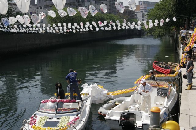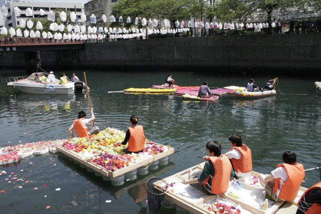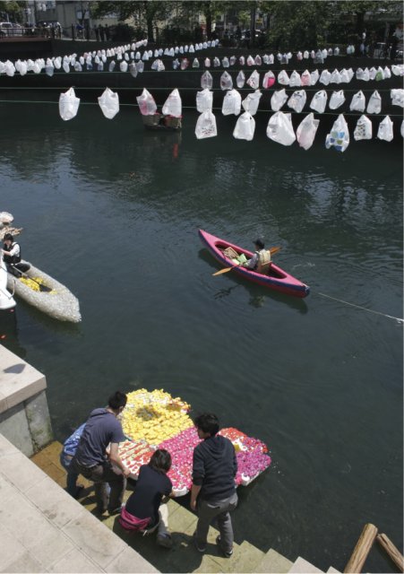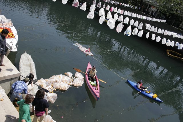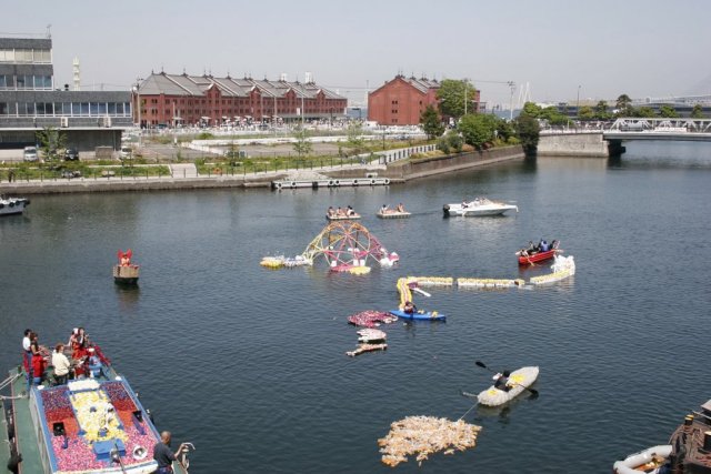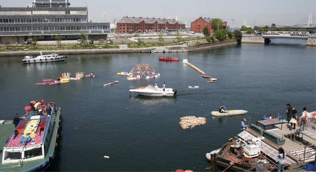 ペットボトルボートやe−ボートによる水上パレードを行った。
