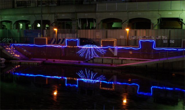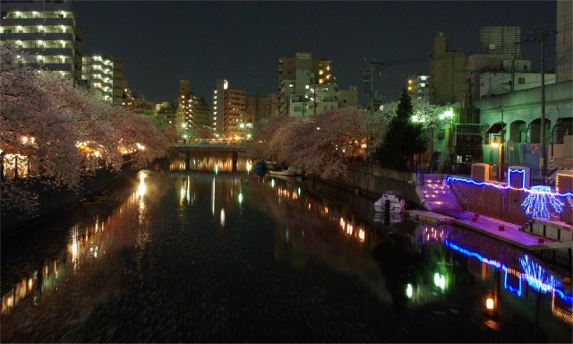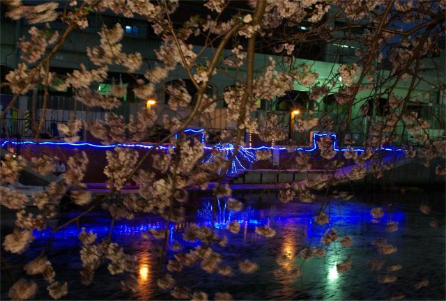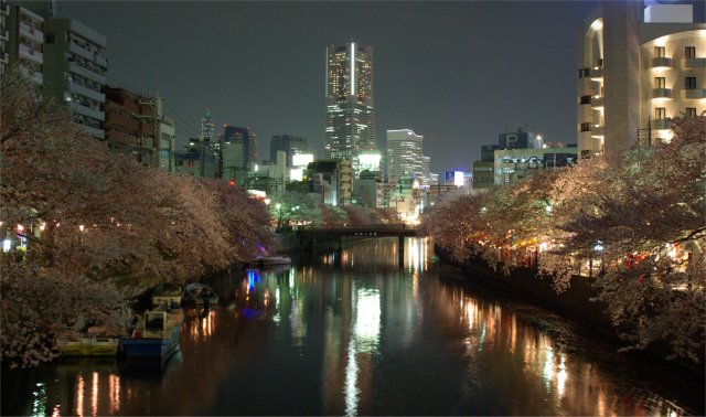 夜桜の大岡川川の駅桜桟橋も人気スポット